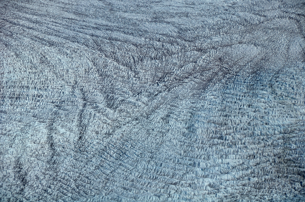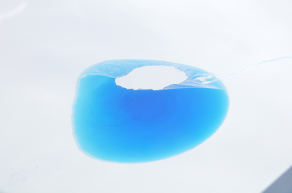 Wir sehen einige "Mirror Ponds". Das sind kleinere Seen in mitten des Eises. Aus unserer Höhe sehen diese aus wie grosse blaue Tupfer auf einem schneeweissen Blatt. Das Wasser ist total klar und man sieht bis an den Grund der Seen. Am Funk ist es sehr ruhig. Wir hören nur die Besatzung eines kleinen Premier-Jets, der hinter uns in gleicher Richtung mit dem Island unterwegs ist. Wir melden regelmässig unsere Position und geben voraussichtliche Ankunftszeiten an den nächsten Meldepunkten durch.